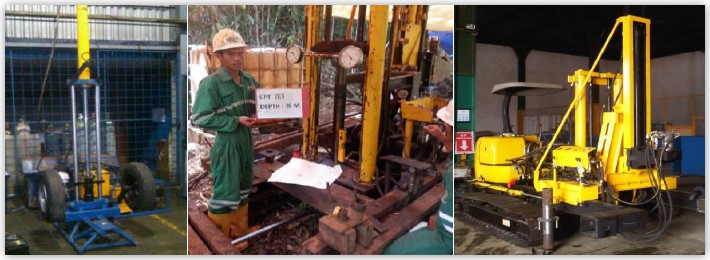 We are also able and having intensive experiences to conduct Cone Penetration Test with/without Pore Pressure measuerment. We have developed some CPT Rigs having various driving capacity of 2.5 - 20 tons. There are 3 type of CPT rigs developed: