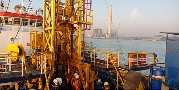 Another THI project is ongoing under Mitsui Engineering & Shipbuilding located at Batang-Central Java. Field investigation for intake and outfall pipeline of Batang Power Plant is implemented using AG Geodrill vessel for offshore part and platform construction for near shore part. Estimated total schedule for these 34 investigation points is almost 30 days and will be continued with onshore laboratorium test and final report submitted to the Client.